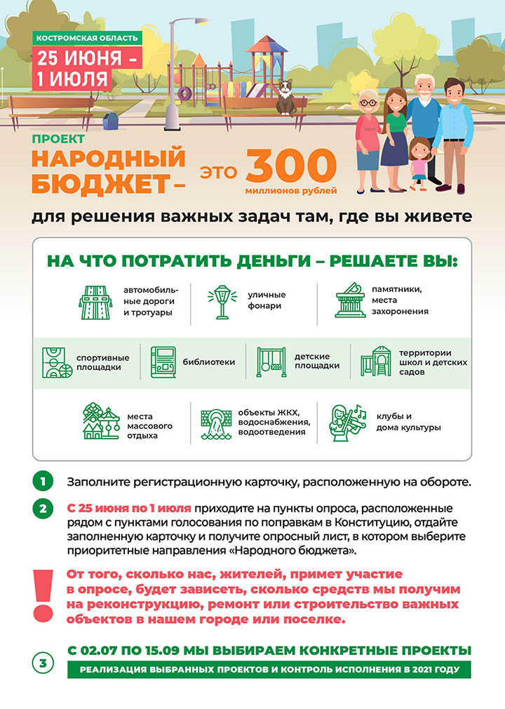 - с 25 июня по 1 июля приходите на пункты опроса, расположенные рядом с участками голосования по поправкам в Конституцию;