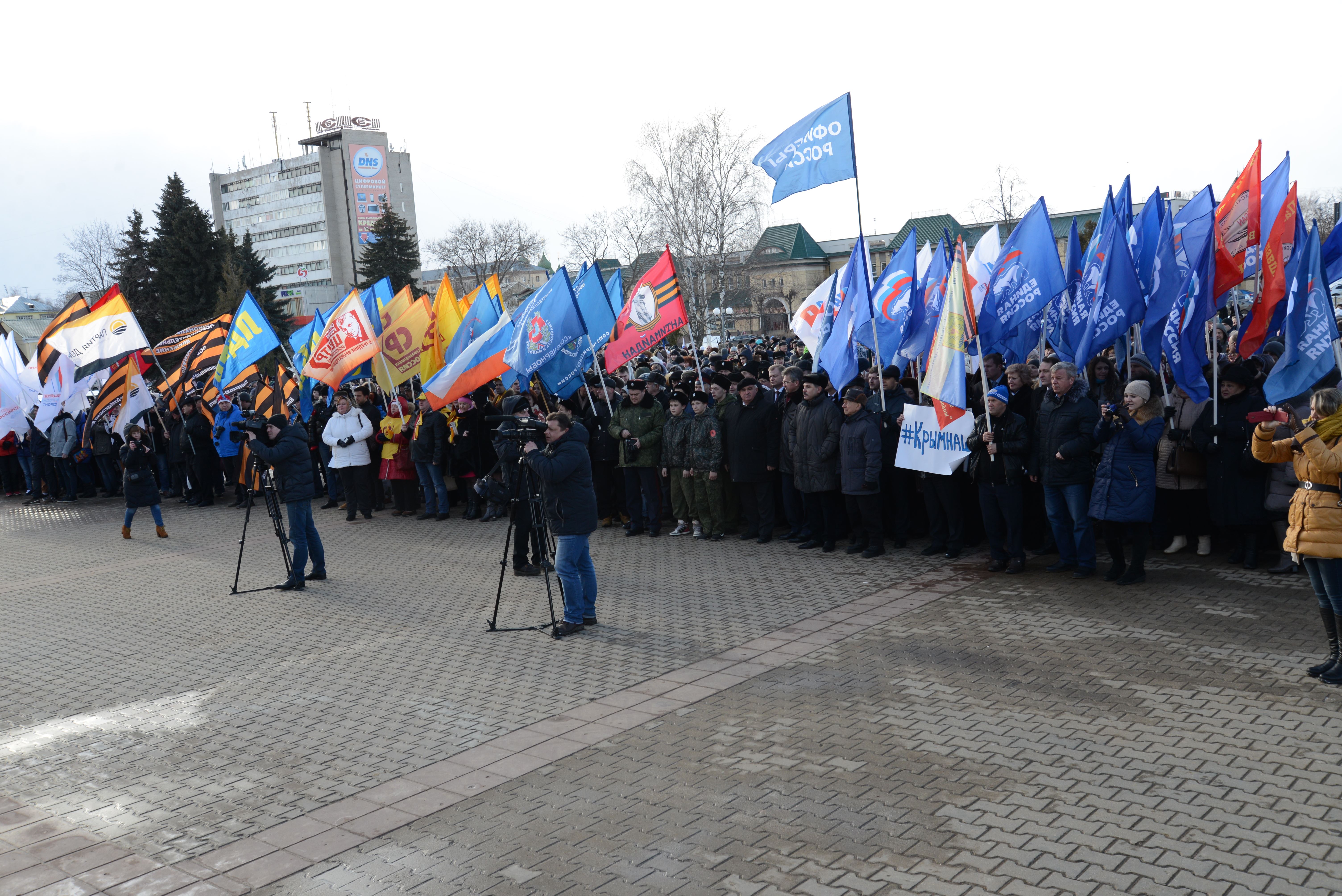 Сегодня на площади Мира состоялся митинг, посвящённый второй годовщине возвращению Крыма в состав России. В нём приняли участие более 5 тысяч человек – представители трудовых коллективов Костромы, студенты, ветераны, руководители города и области. Выступавшие подчёркивали историческую важность и справедливость возвращения полуострова в состав России, а также важность того, что решение о воссоединении было основано на волеизъявлении жителей Крыма. В завершении митинга перед собравшимися на площади с вокальными номерами выступил муниципальный творческий коллектив «Дебют».